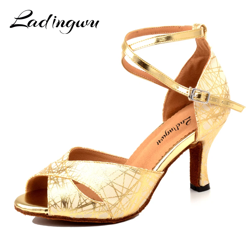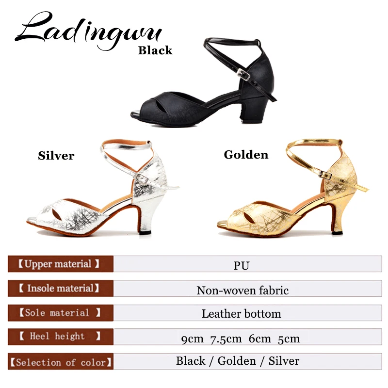BEST SELLER Ladingwu PU Latin Dance Shoes Woman's Salsa Shoes Silver Golden Black Women Ballroom Dance Competit