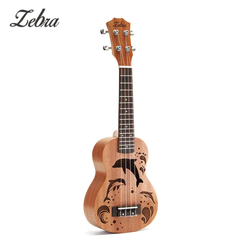 BEST QUALITY 21 Inch 4 Nylon Strings Ukulele Sapele Dolphin Pattern Hawaii Ukelele Mini Guitar Soprano Rosewood