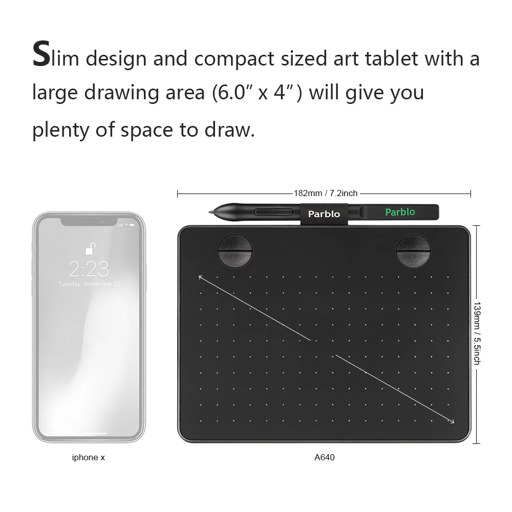 New Arrival Parblo A640 6*4 Inch Large Active Area Professional Signature USB Graphics Tablet 8192