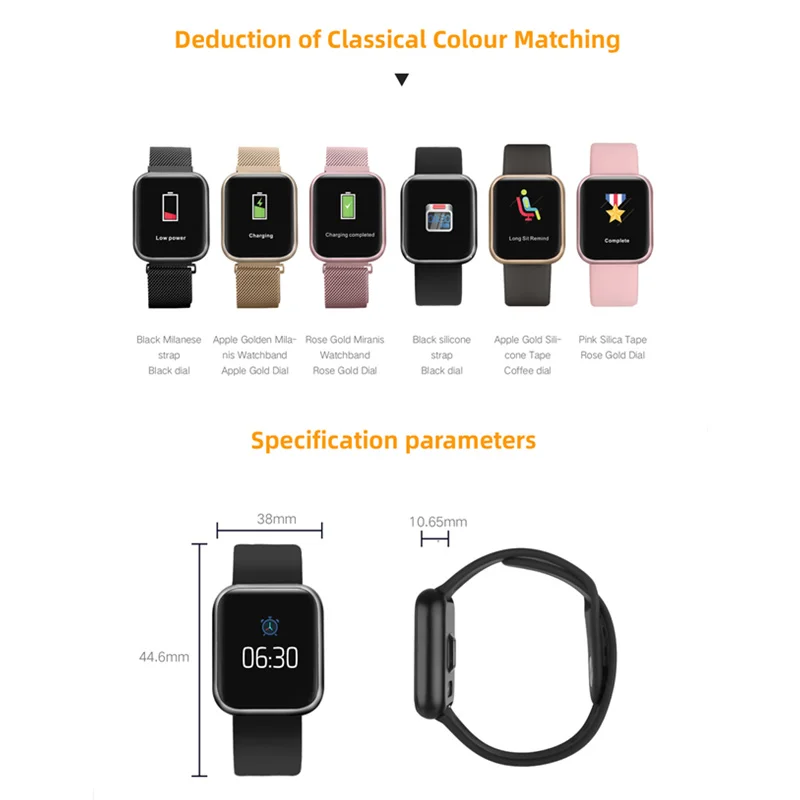Smart watch P80+Strap/Set Full Touch Color Screen Smart watch Women Men Heart Rate Monitor Blood Pr